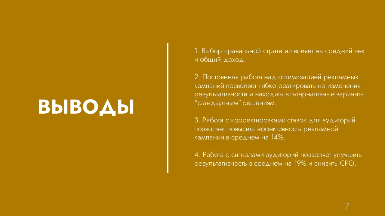 Вывести рекламу на уровень рентабельности, удерживая ДРР в пределах ≤20%