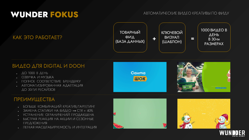 Wunder Fokus — видеокреативы из товарного фида для e-commerce и ритейла в Казахстане